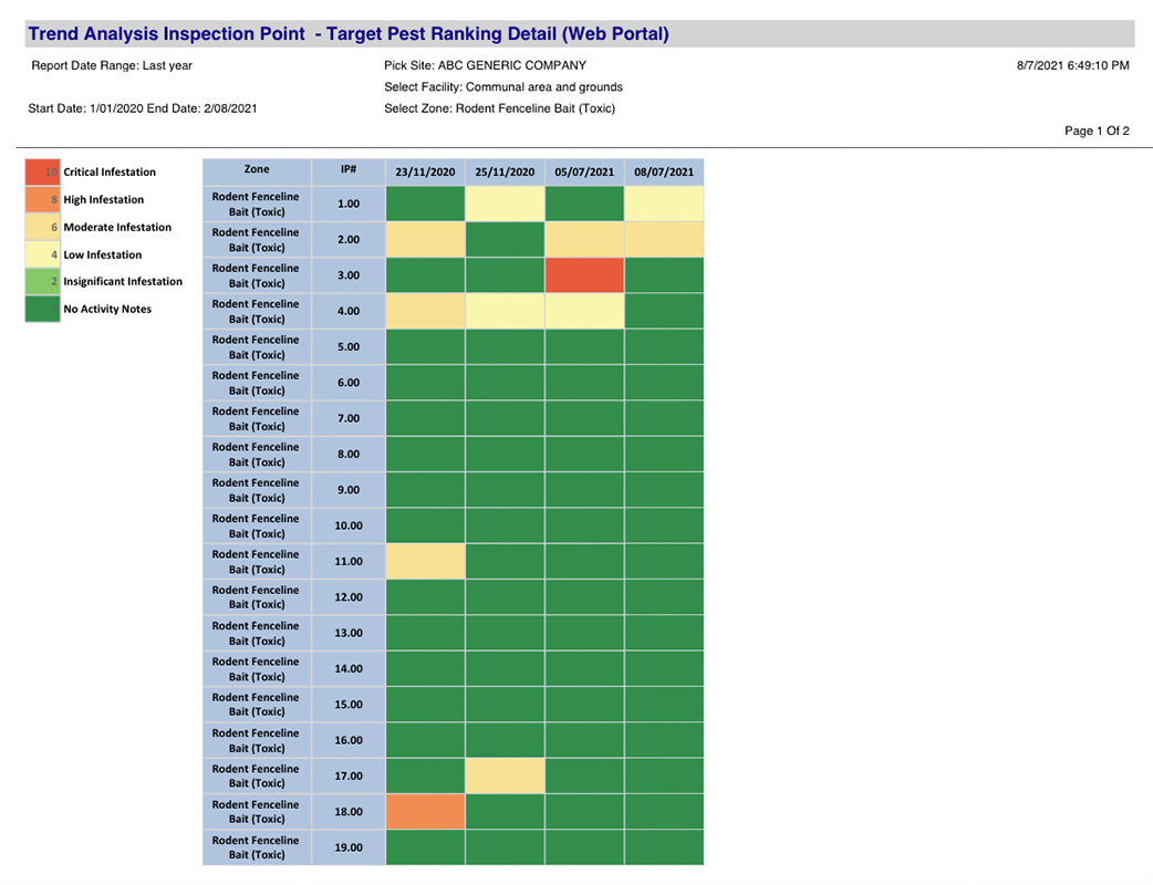 Use historical data with date ranges to identify trends in infestation level, pest activity and more.